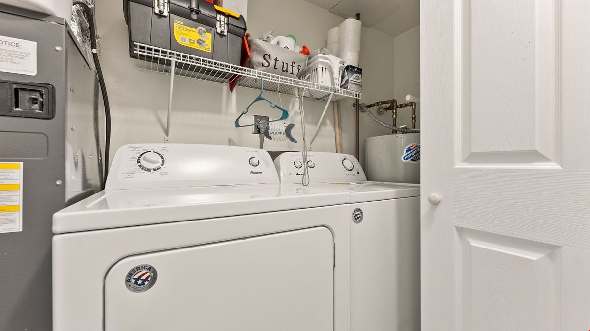 There are two full baths, a shower stall off the master bedroom and a soaking tub in the hall bathroom. With central air, a full-sized washer and dryer, and large closets for plenty of storage, we are confident you’ll find everything you’ll need.